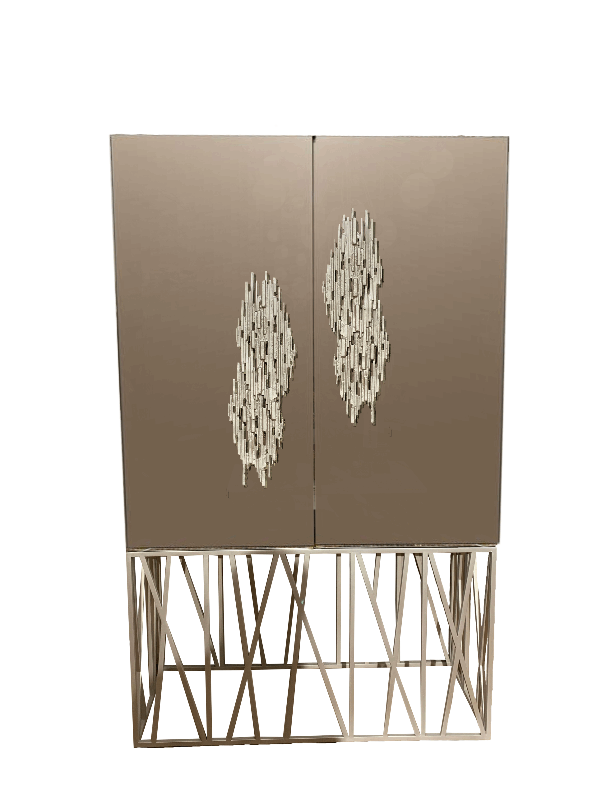Licoreiro Espelho Gris Com Puxadores Azulejos Champanhe