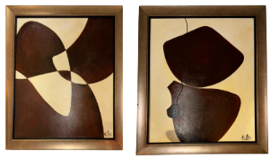 Moldura Bronze C/ Pintura à Mão Abstrata Tons Castanhos