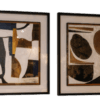 Moldura Preta C/ Pintura à Mão Cara Tons Azuis e Salmão 76x66cm