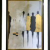 Moldura Preta C/ Vidro e Friso Dourado C/ Pintura Abstrata Tons Verde