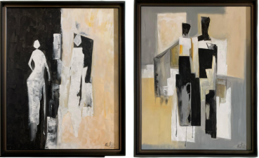 Moldura Preta e BronzeC/PintutraAbstrataPessoas