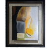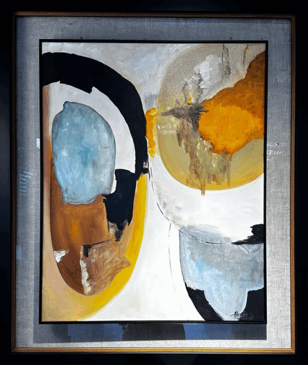 Moldura Preta e Madeira C/ Vidro Pintura Abstrata Tons Terra 115x135cm