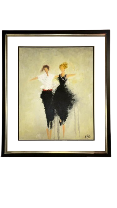 Moldura Preta e Prata C/ Vidro e Friso Preto C/ Pintura mulheres 119x139cm