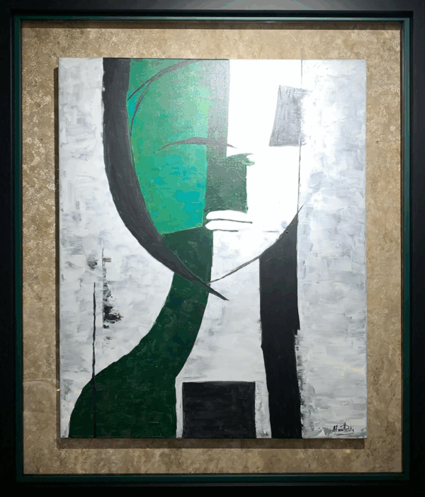 Moldura Preta e Verde C/ Vidro Pintutra Rosto Homem Verde 113x133cm