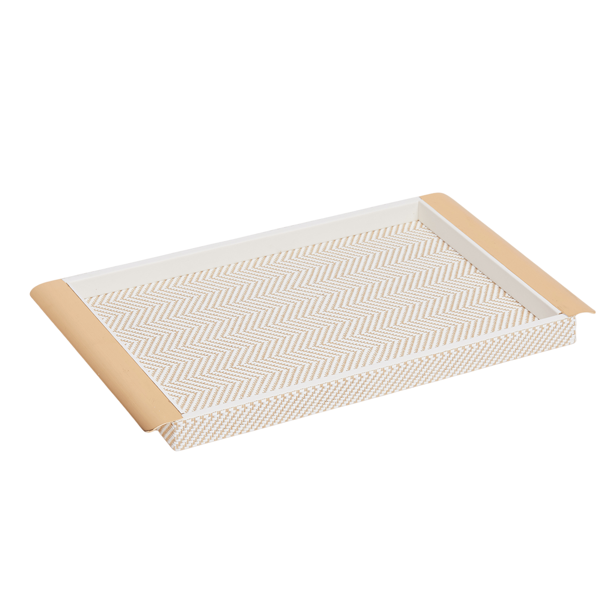 Tabuleiro Branco Com Pegas Douradas 50*31*3cm